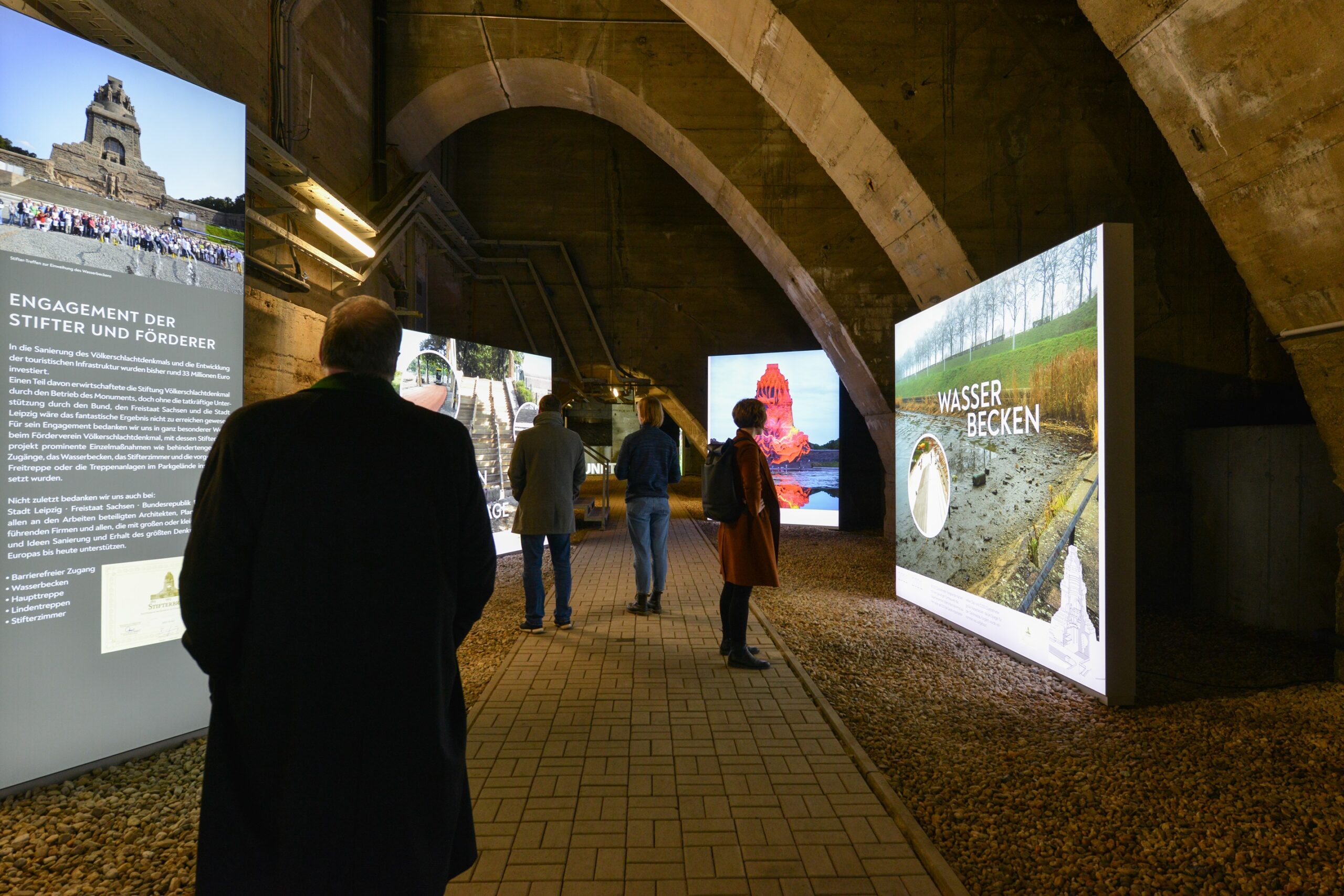Hinweis: Der Zugang ist aufgrund von Baumaßnahmen derzeit leider nicht möglich. Nach Abschluss der Arbeiten kann die Ebene mit einer exklusiven Führung oder im Rahmen der öffentlichen Führung, jeden Donnerstag um 14 Uhr, erkundet werden. Führungen können gebucht werden über besucherservice@voelkerschlachtdenkmal-leipzig.de.