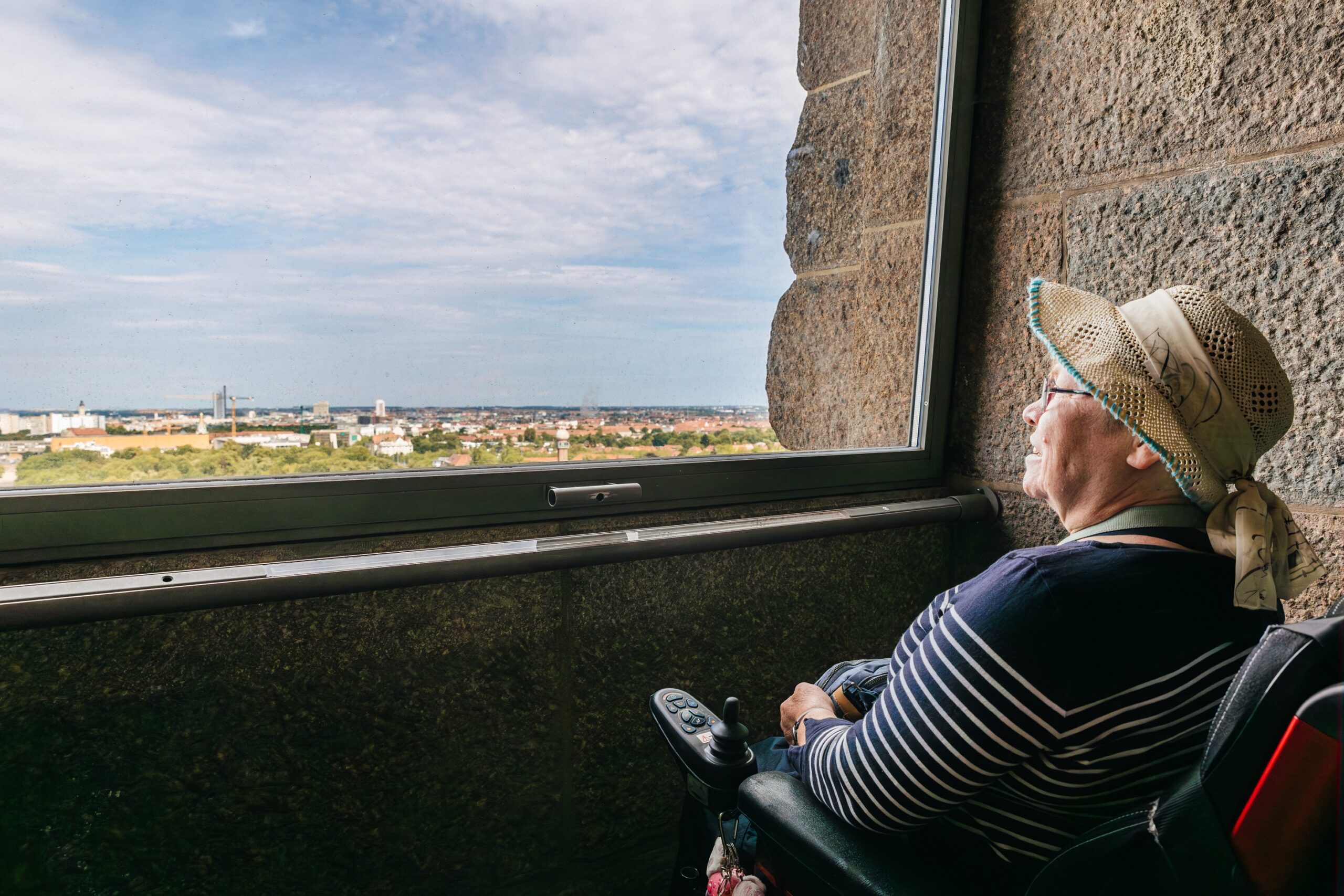 Access to the park area and the monument is barrier-free for wheelchair users. Elevators take you up to the inner gallery at a height of 47 meters. Wheelchair users can also enjoy the phenomenal panoramic view via glazed windows.